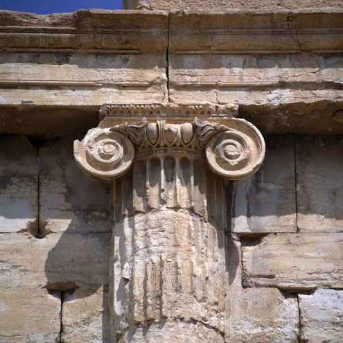 In 1989, Brown traveled to the Syrian desert and made her first trip of many to the ancient caravan town of Palmyra to photograph its unmistakable beauty and architectural grandeur. The monumental architectural remains are known in both ancient times and modern times and reflect a dynamic mix of cultures and traditions. Her images overcome the harsh desert sun to reveal the remarkable details and subtle hues of this stone urban landscape.