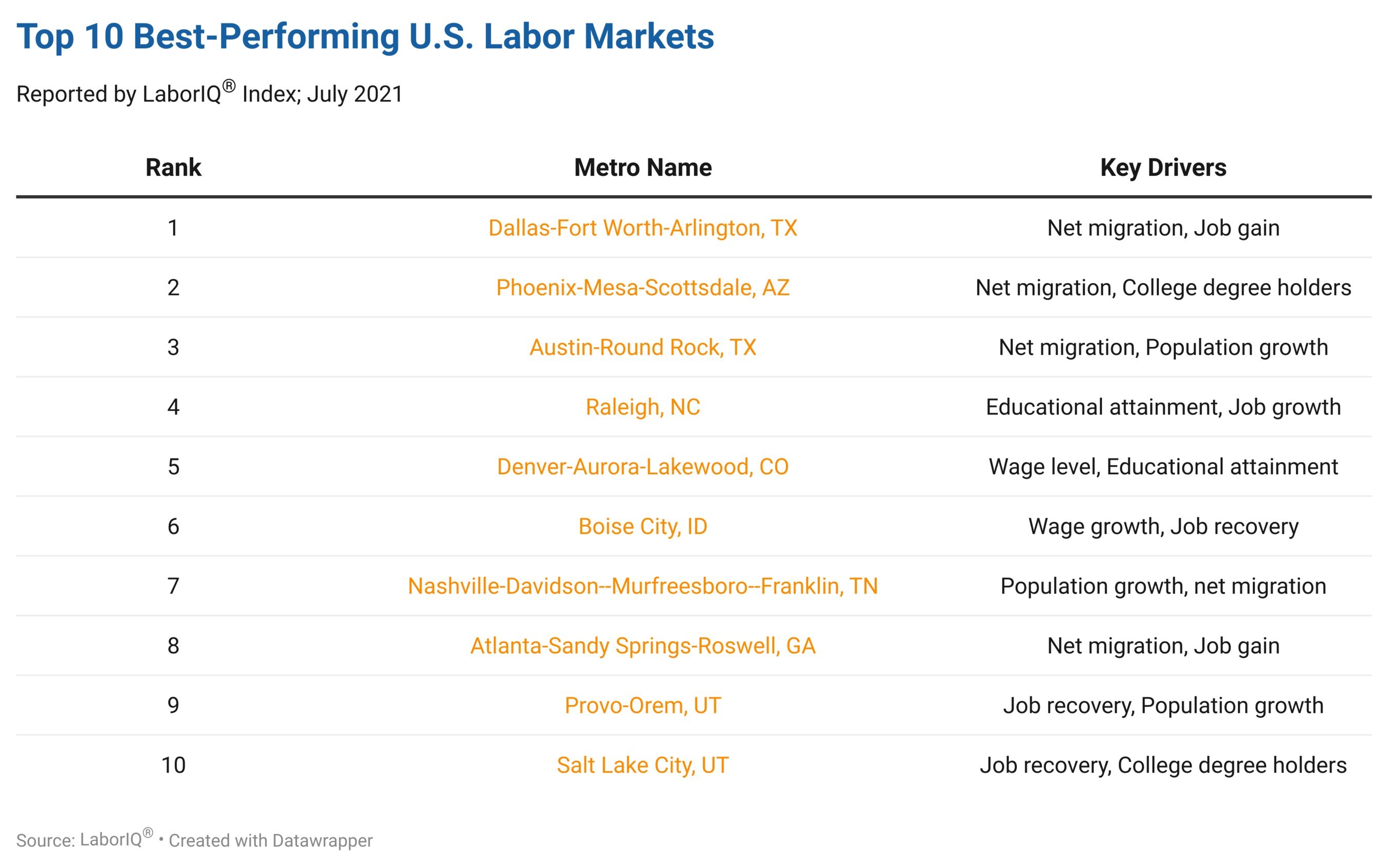 The 10 Top Performing US Labor Markets