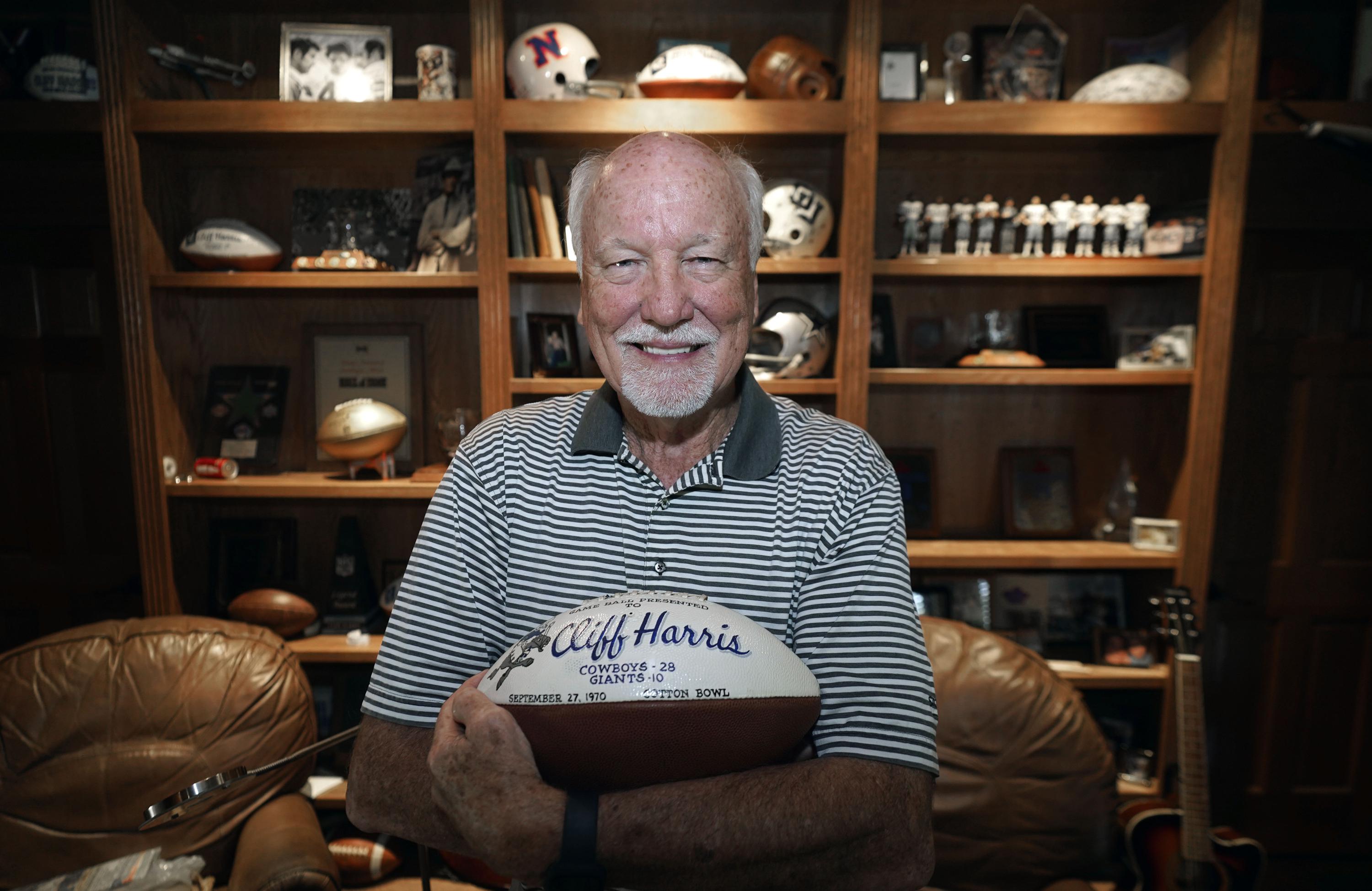 Harris has a commemorative ball in the study at the 72-year-old Dallas home from the second game of his rookie season, a 28-10 win over the New York Giants. The late Cowboys coach Tom Landry had spent most of his playing career with the Giants.